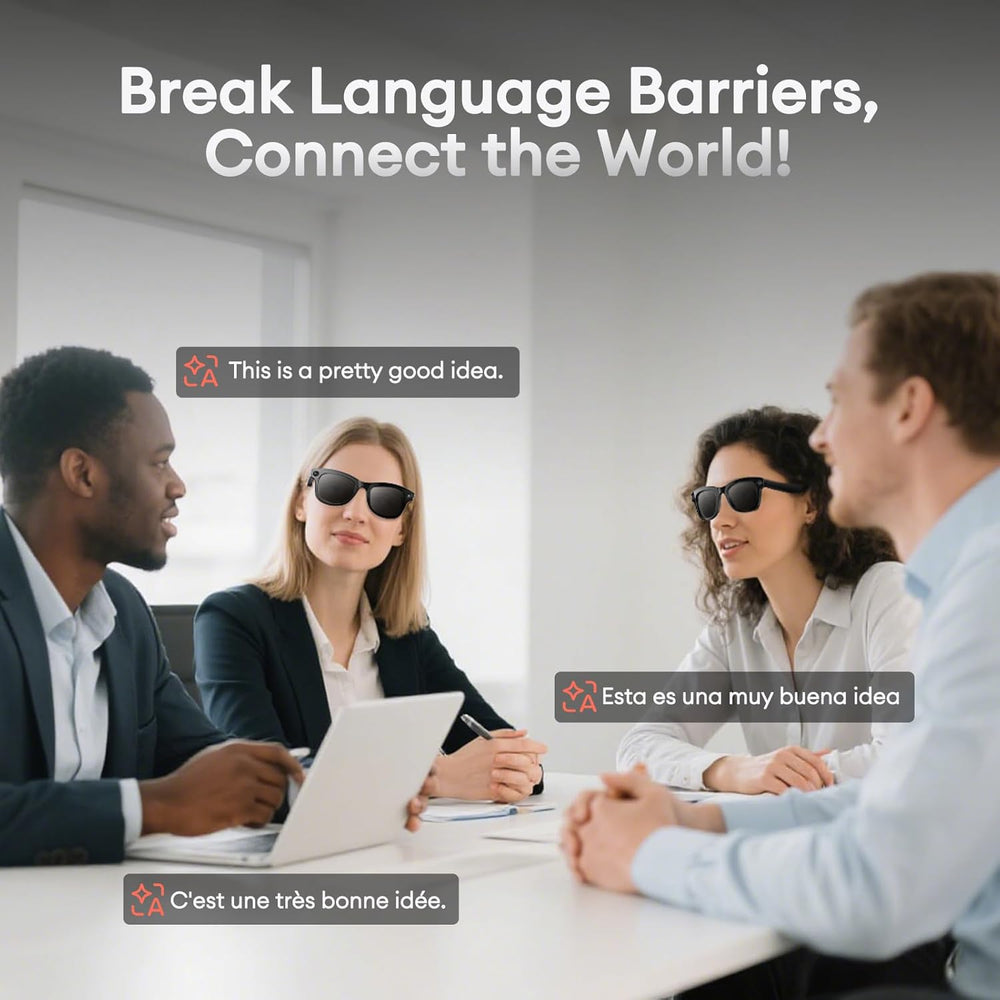 Dual-Mic ENC & Voice Recording for Crystal-Clear Sound: AI smart glasses equipped with dual microphones and ENC technology reduce background noise and enhance voice clarity. Ideal for capturing clean audio in voice notes, interviews, or ambient recordings—even in noisy environments.